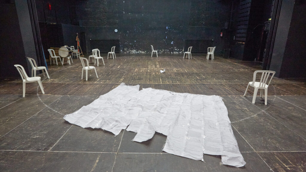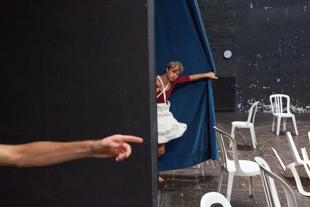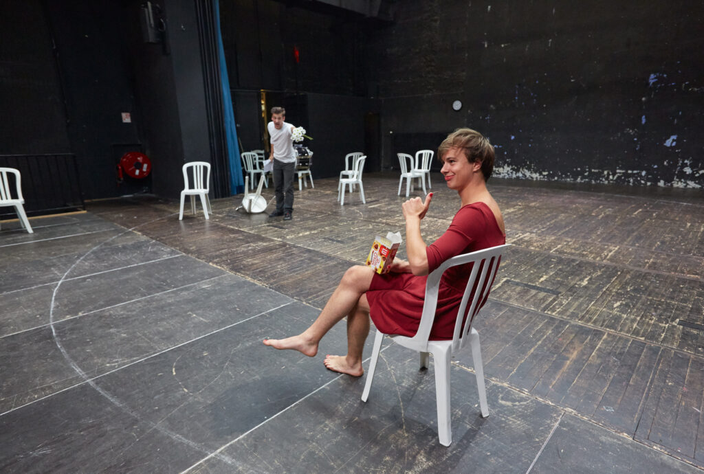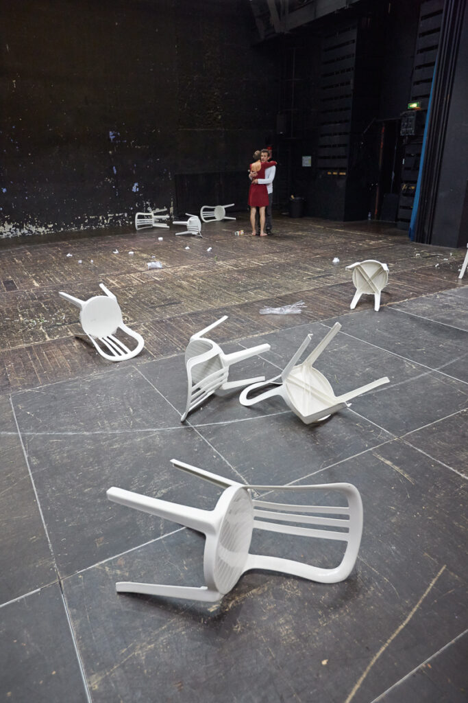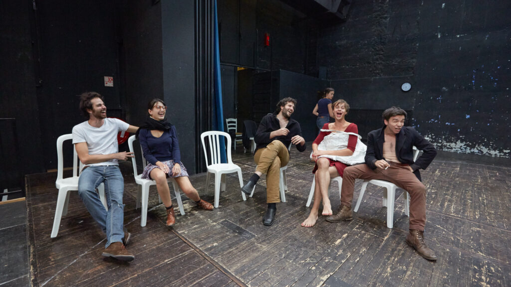 Il y a quarante ans Antoine Vitez présentait à Avignon quatre pièces de Molière avec de jeunes comédiens dans un décor unique. Aujourd’hui, Gwenaël Morin a choisi ces mises en scène comme matériau pour travailler avec de jeunes acteurs. Molière comme une formidable machine à jouer, pour sa puissance fondamentale de produire du théâtre. La distribution s’est faite par tirage au sort, sans tenir compte ni des rôles d’hommes ou de femmes, ni des personnages principaux ou secondaires. Gwenaël Morin centre son travail sur lʼacteur et ne sʼencombre pas de décors ou de costumes. De Molière à Vitez en passant par Morin, c’est ce même élan, cette même énergie qui sont ici réactivés.