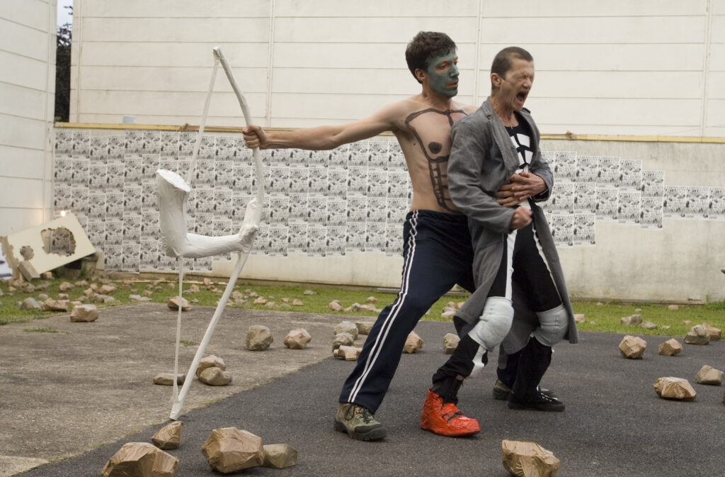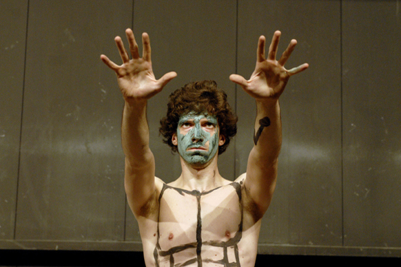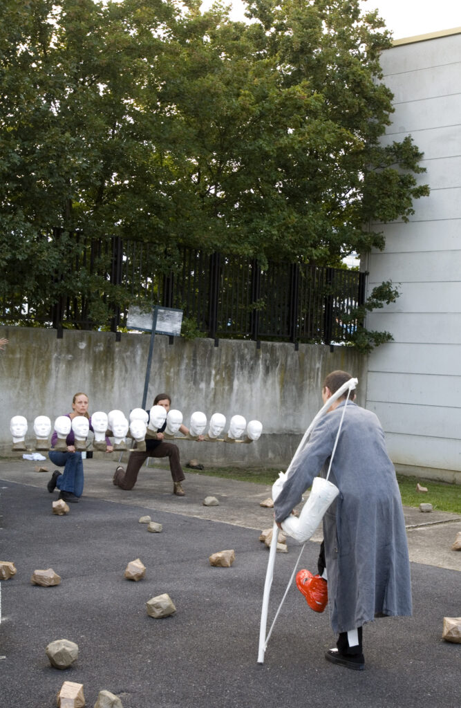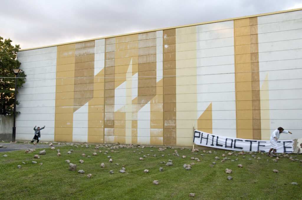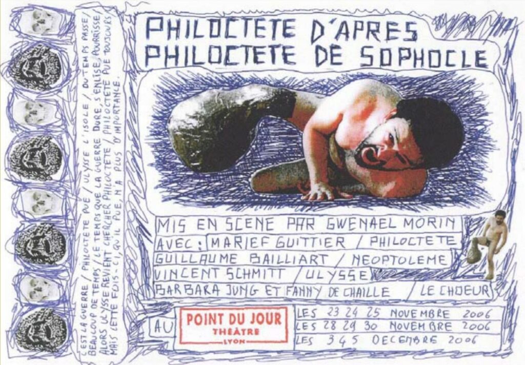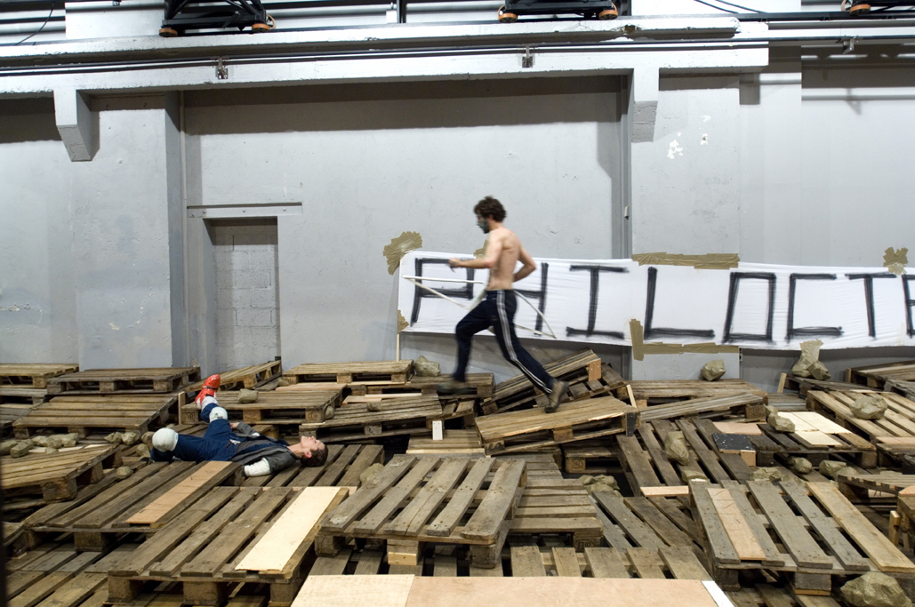 Je veux dire et montrer en faisant Philoctète d’après Philoctète de Sophocle que les mots peuvent être des pierres, des projectiles susceptibles d’être tenus puis lancés contre l’autre pour l’atteindre violemment et le transformer. Je veux dire et montrer que les mots peuvent devenir des armes et je veux faire une mise en scène qui dresse, entre les protagonistes Philoctète, Néoptolème et Ulysse, une guerre des pierres.