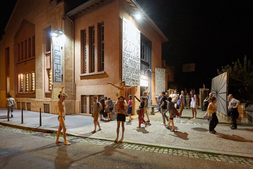 J’ai l’intention pour mai 2018 de reprendre Paradise Now. J’ai l’intention d’utiliser pour cela le texte rédigé a posteriori par Julian Beck et Judith Malina (directeurs du Living Theater) qui décrit les différents moments de la pièce, leurs processus de mise en œuvre et leurs soubassements dramaturgiques. J’ai l’intention d’intituler cette reprise Re-Paradise. Je voudrais réactiver le plus littéralement possible les formes anciennes contenues dans Paradise Now et mesurer le cas échéant ce qu’elles produisent encore ou ne produisent plus aujourd’hui. Le paradis est l’image d’un monde sans violence. Paradise Now demande ce monde « maintenant ». À l’instar des tragédies grecques antiques, cette pièce vise à produire un effet cathartique en proposant des rites théâtraux pour s’émanciper de la violence.